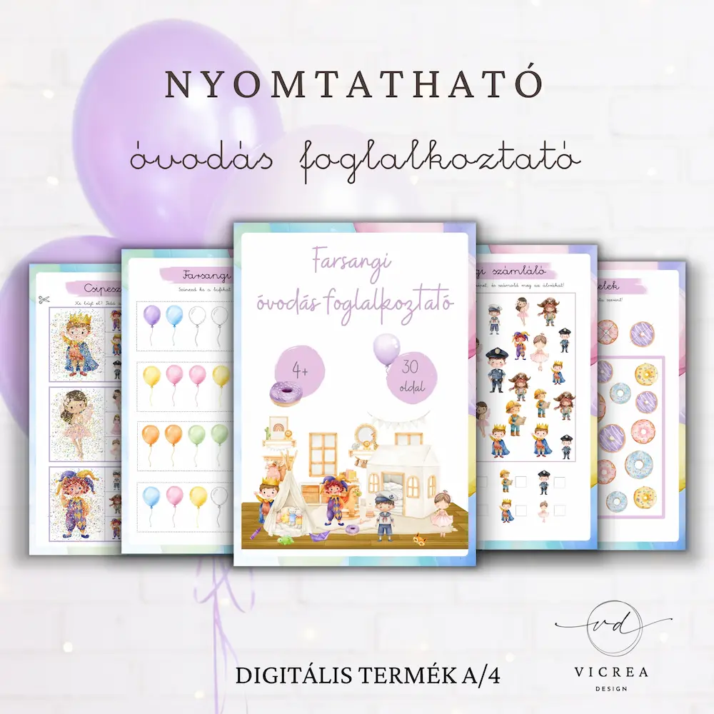 🎨 Farsangi óvodás foglalkoztató – 30 oldal