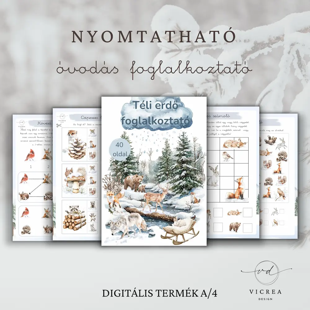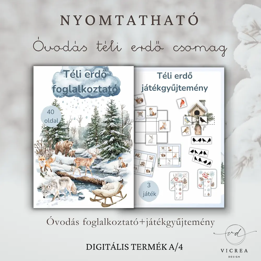 ️ Téli erdő NAGY játékcsomag (40 oldalas Téli erdő foglalkoztató+ téli erdő játékgyűjtemény csomagban)