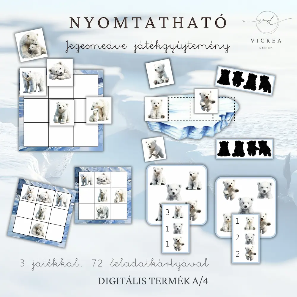 Jegesmedvés játékgyűjtemény – 3 fejlesztő játék, 72 feladatkártya