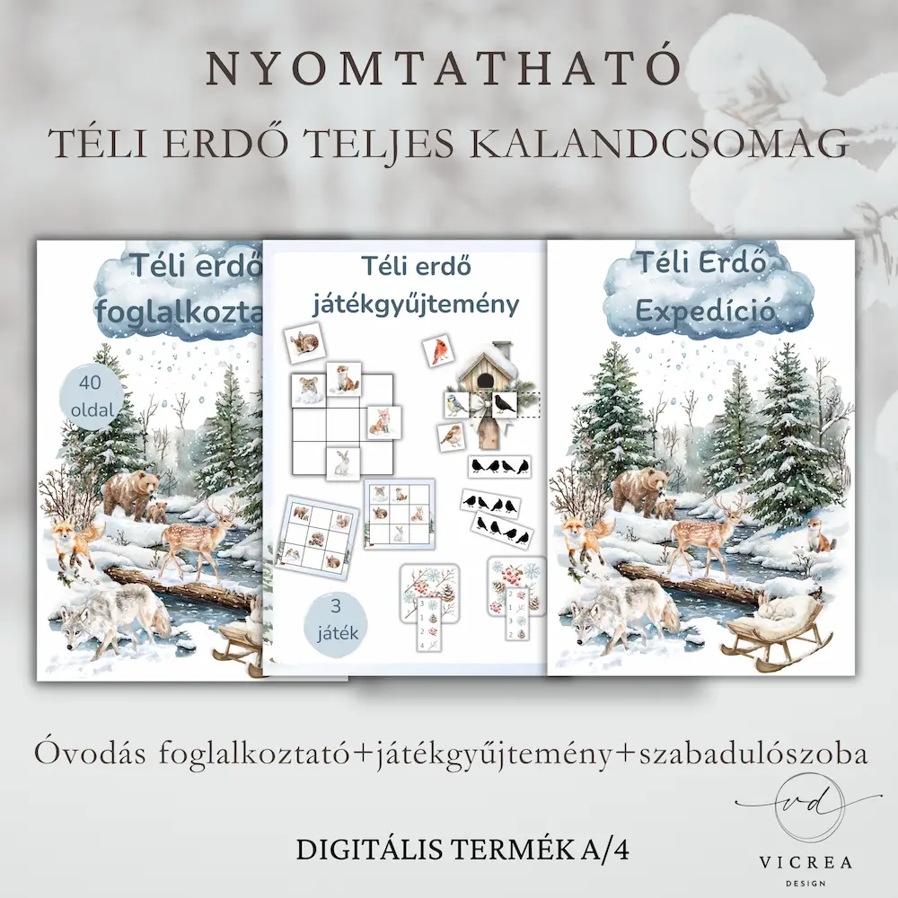 🧩 1️⃣ Téli erdő NAGY játékcsomag (3–7 év) foglalkoztató + játékgyűjtemény