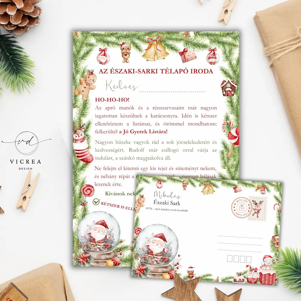 📬 Levél a Mikulástól + boríték (Levél A4 méret, boríték C6 114x162mm boríték)